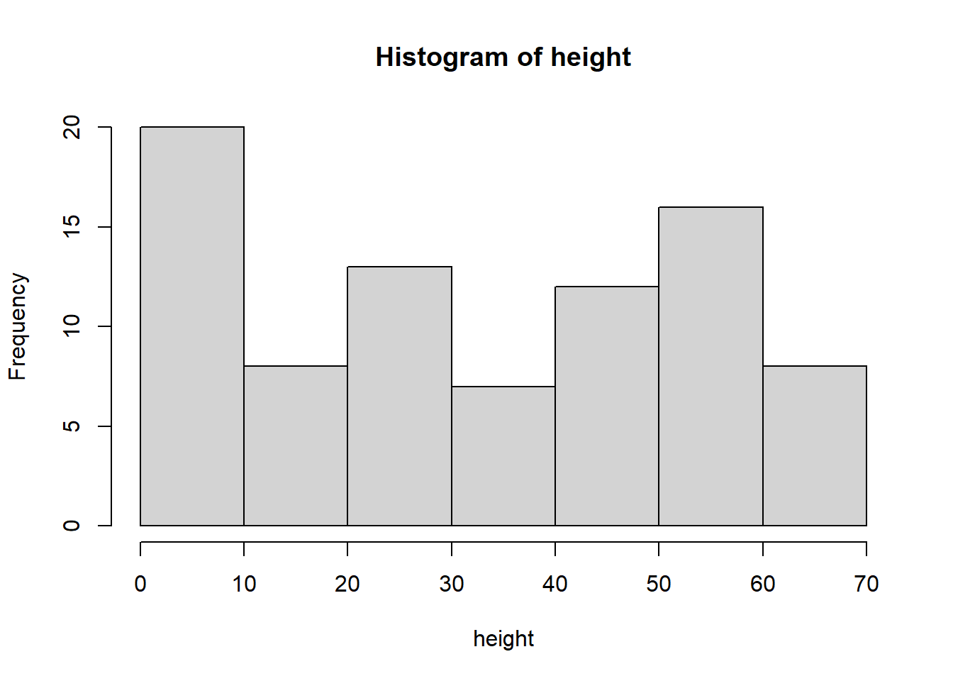 R will automatically create the entire box plot, including showing any outliers. (Which we should note that there aren’t any in the height variable!)