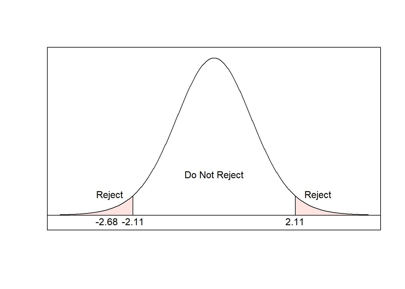 Since the test statistic is in the rejection region, we reject the null hypothesis. For the p-value approach, since \(\text{p-value}=0.158 < \alpha =0.05\), reject the null hypothesis.