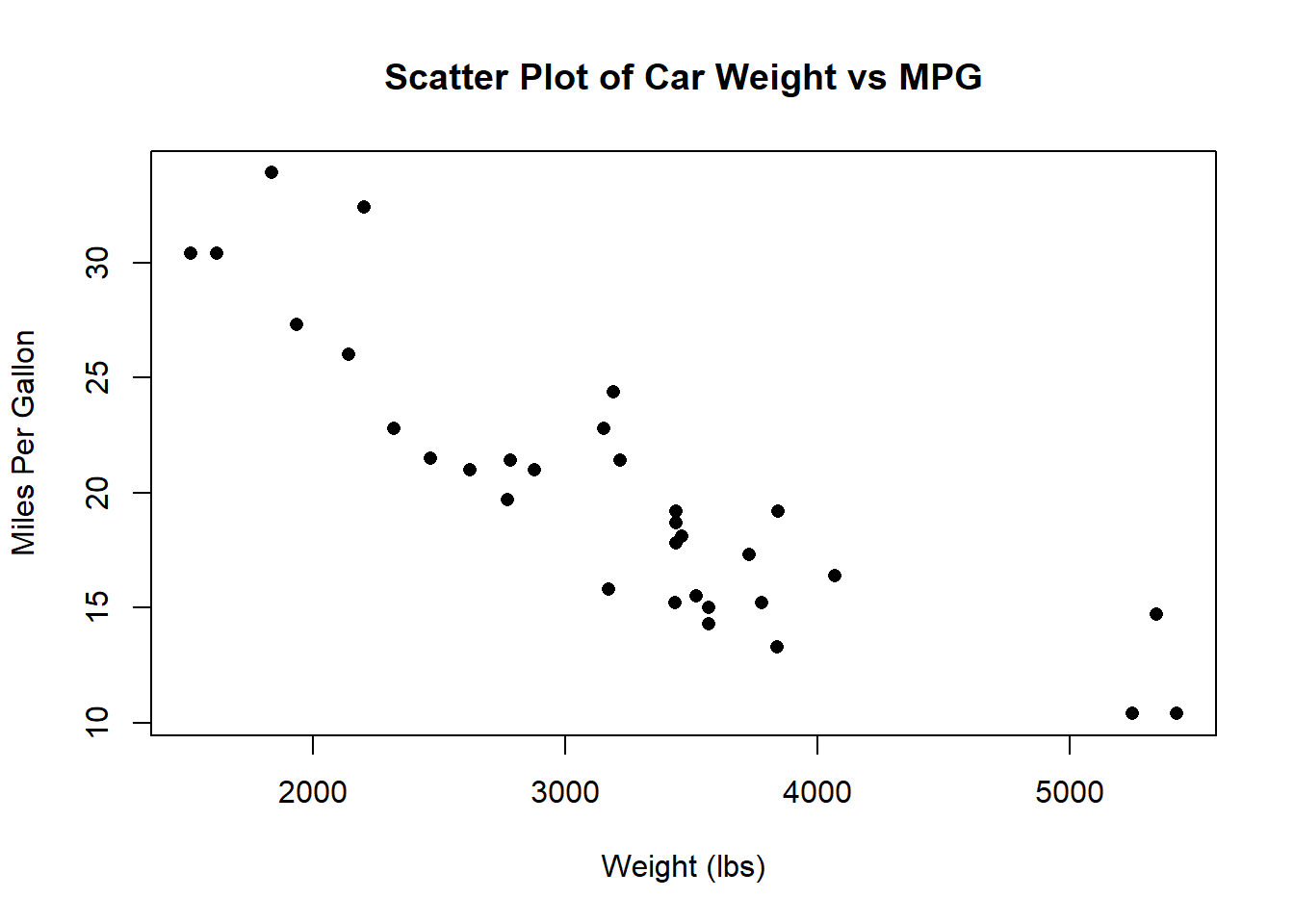 - Predict the miles per gallon for a car that weighs 3,500 lbs.
